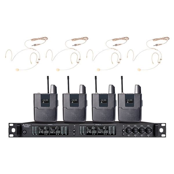 AMW BU7000 - Microfone sem fio 4 Canais Digital UHF Auricular