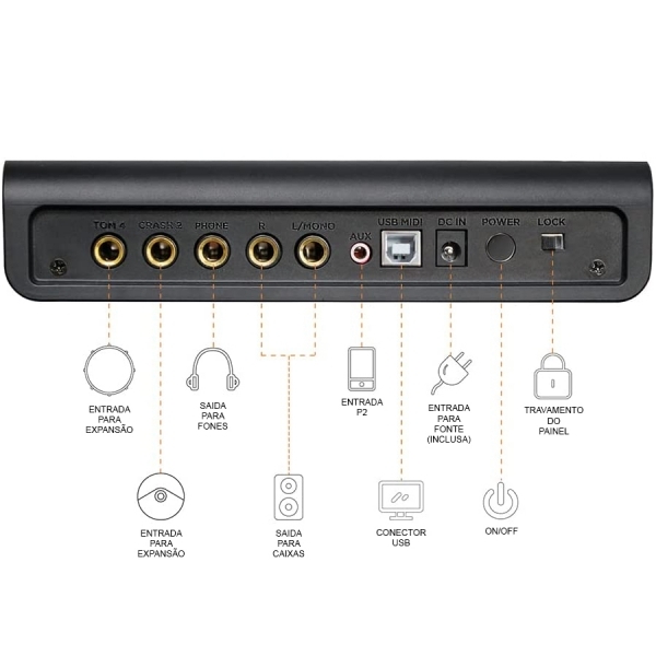 Saída USB para conexão ao computador (MIDI)