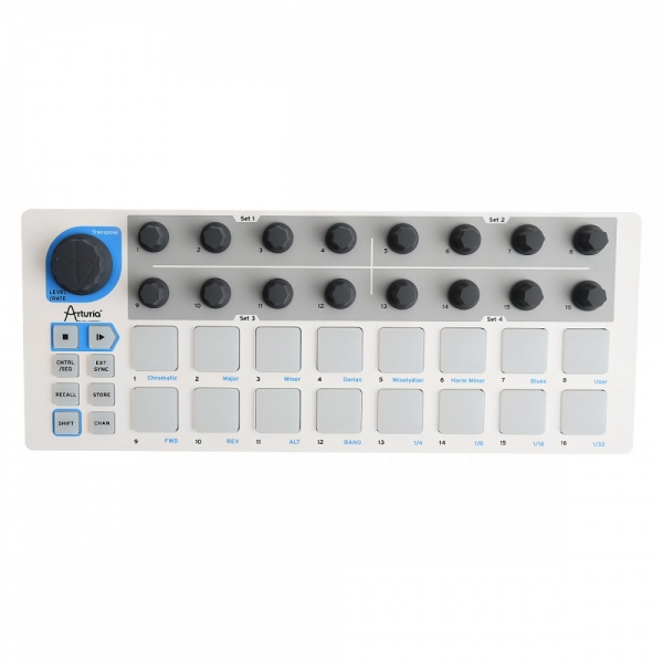 O BeatStep da Arturia oferece um novo nível de funcionalidade e desempenho no universos dos controlador portátes com pads. O BeatStep é altamente versátil, capaz de disparar clipes no Ableton Live e tocar bateria no EZdrummer, por exemplo, mas ele também é um sequenciador analógico com 16 passos. Esta funcionalidade é fundamental na criação de todos os tipos de frases musicais que podem ser enviadas para sintetizadores analógicos, baterias eletrônicas, dispositivos MIDI ou programas de computador. Sua vasta gama de conectores permite que o BeatStep seja a interface de conexão perfeita com seu computador (através de USB), seus módulos de bateria (via MIDI tradicional) ou com seu sintetizador analógico (via CV / Gate).