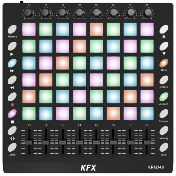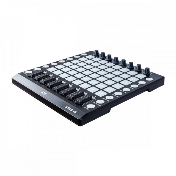 O KFX KPAD 48 é um controlador exclusivo para uso com o Software Ableton Live. É um sistema híbrido com knobs e faders junto com os pads de lançamentos de clipes, ideal para quem precisa de maior flexibilidade controlando diversos parâmetros junto além dos clipes de lançamento. Além disso o produto conta com 16 botões de comando, entrada e saída Midi, conexão e energia através de porta USB e é plug n play com Windows e MAC OSX. Um poduto com excelente custo benefício se comparado a concorrência.